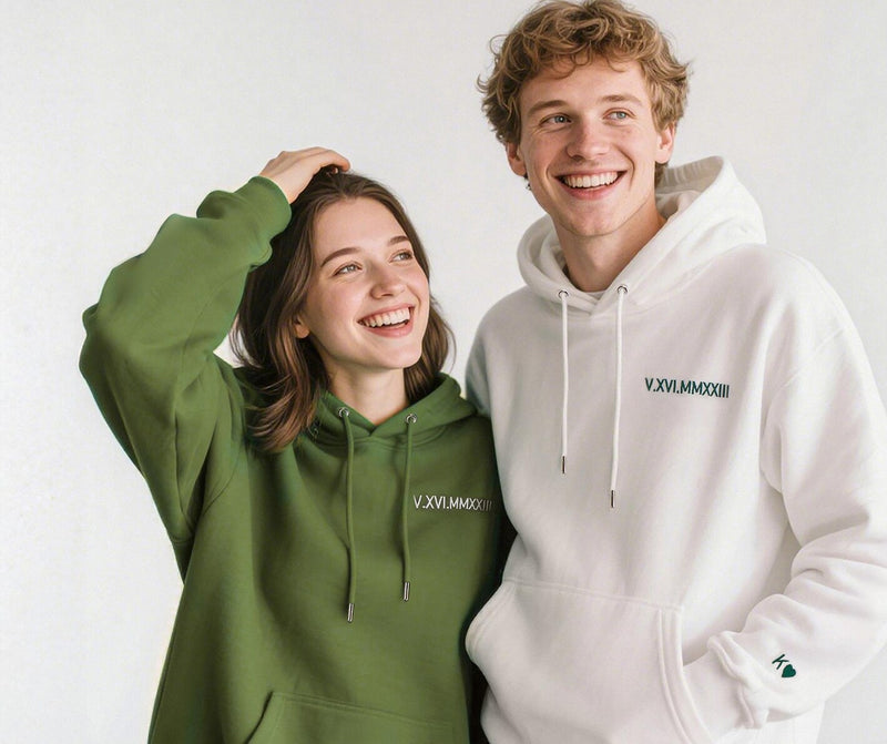 Benutzerdefinierte Bestickte Hoodies mit Römischen Ziffern, Geschenk für Paare