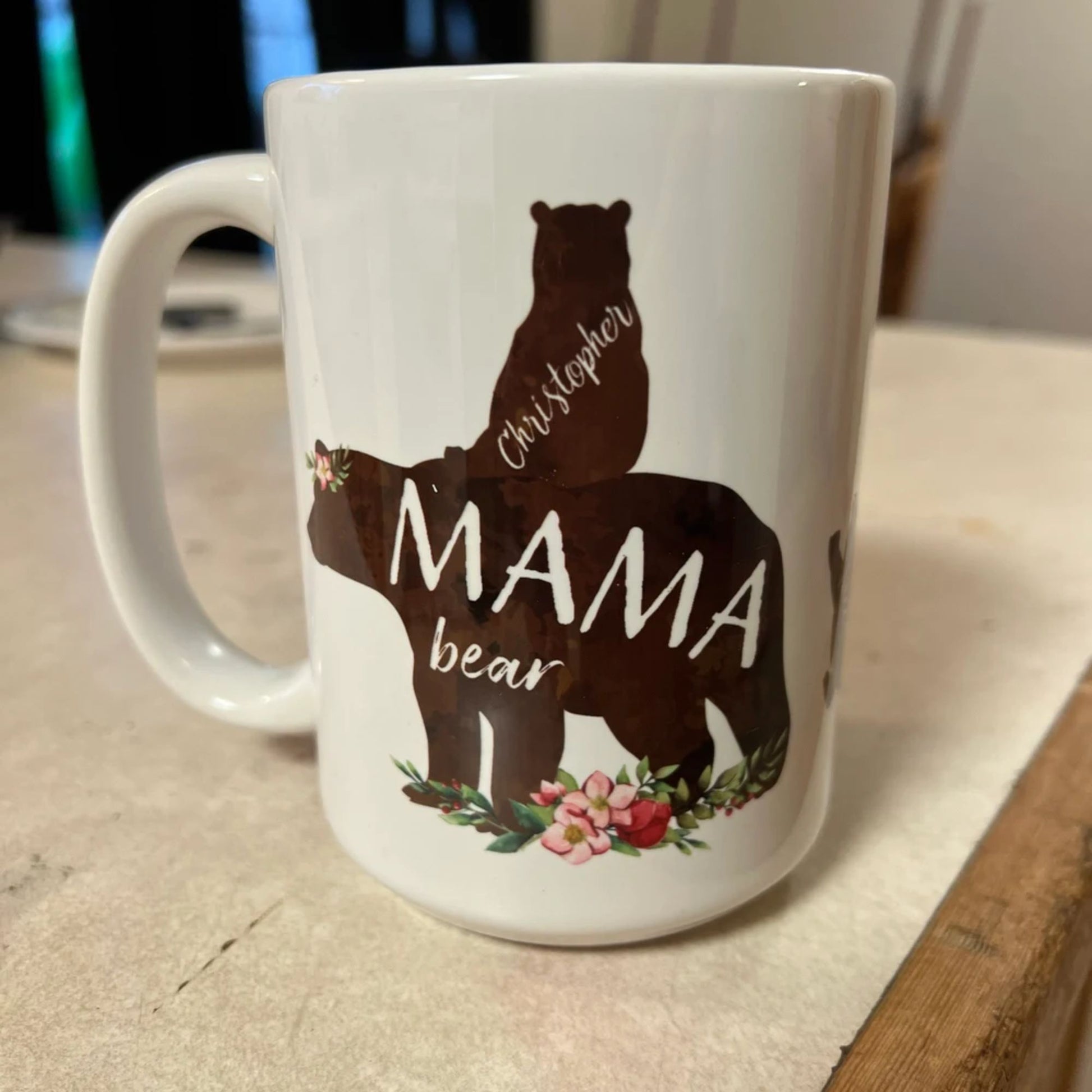 Mama Bär mit ihren Bärchen Kaffeebecher – Personalisierter Bärenfamilien Becher