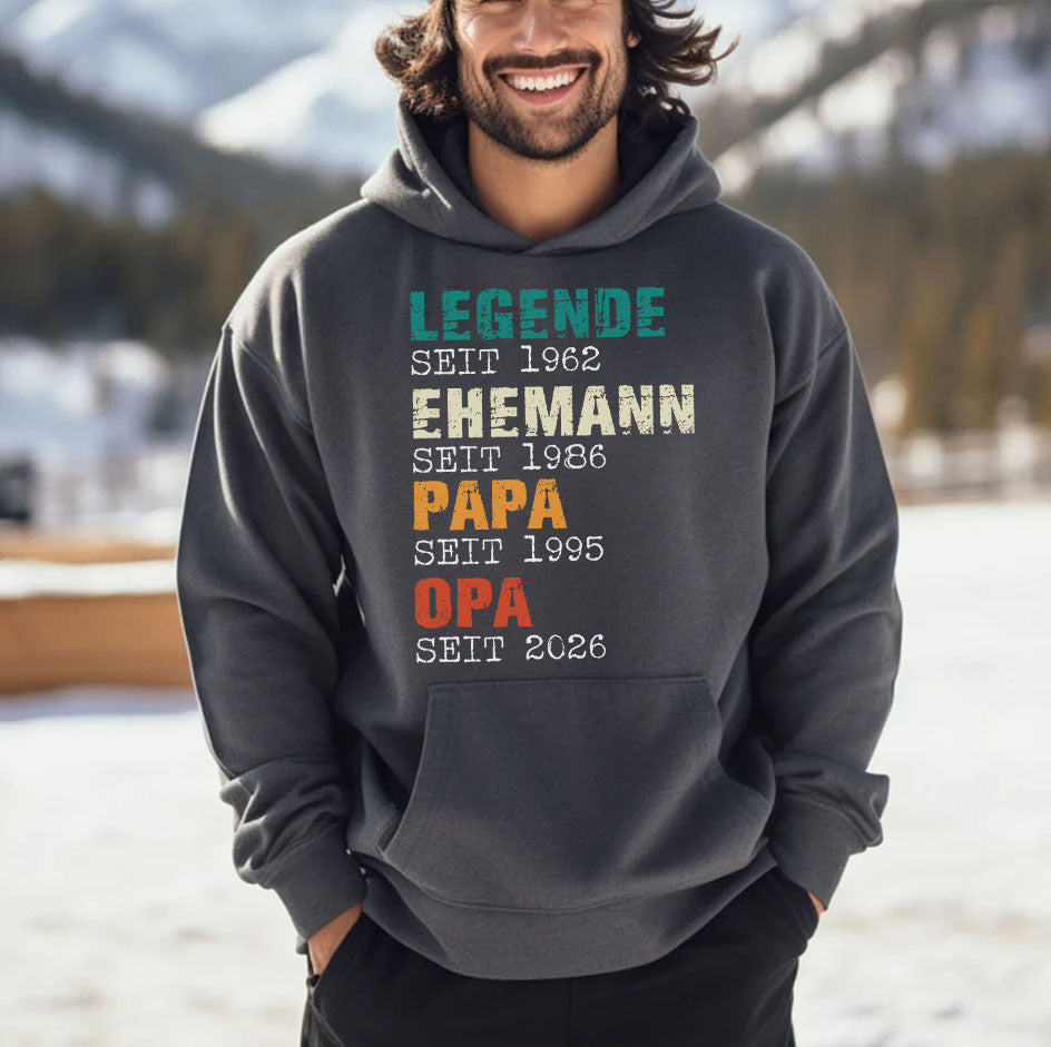 Personalisierter Opa Hoodie als Vatertagsgeschenk - Ehemann Vater Opa Legende
