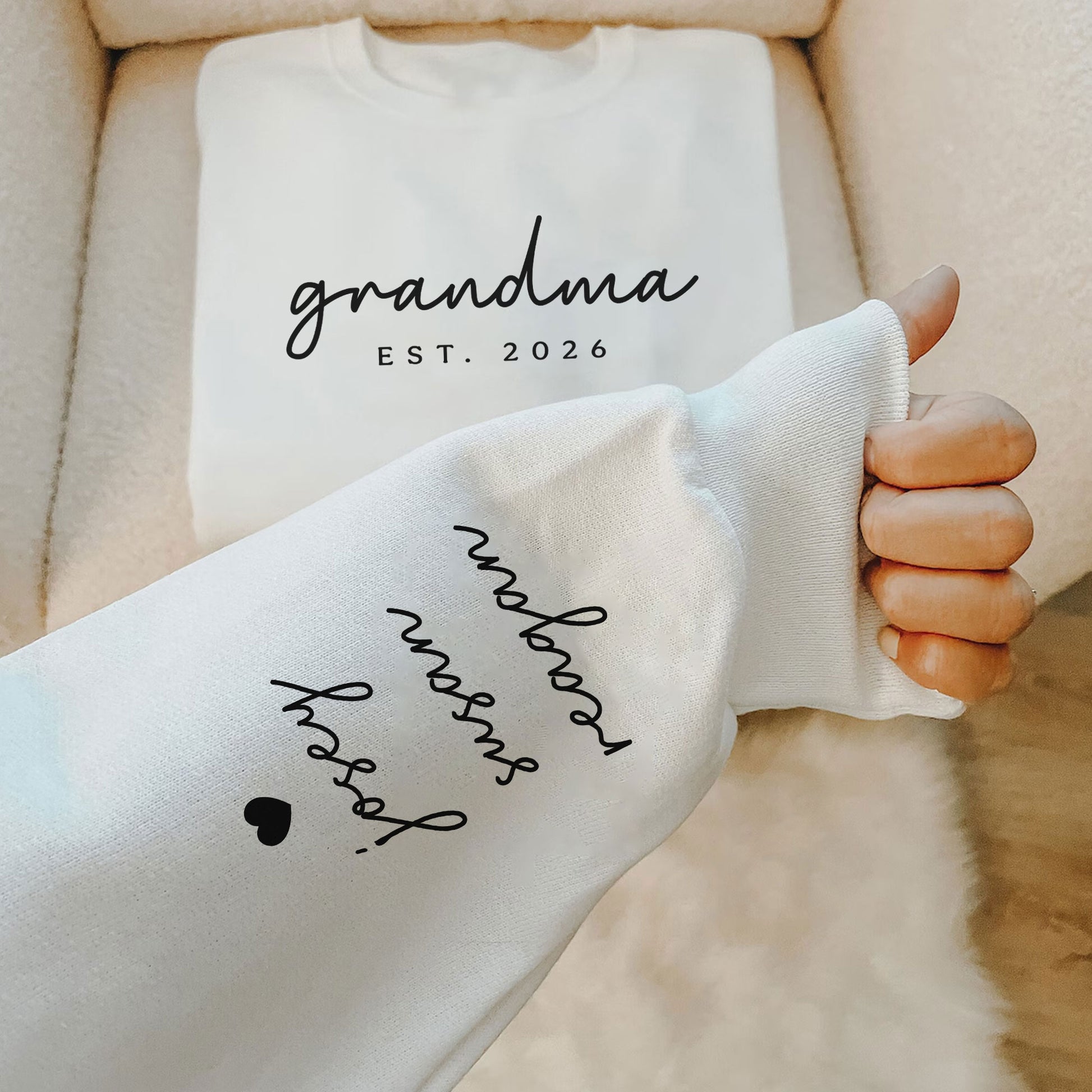 Personalisiertes Oma-Sweatshirt mit Kindernamen auf dem Ärmel